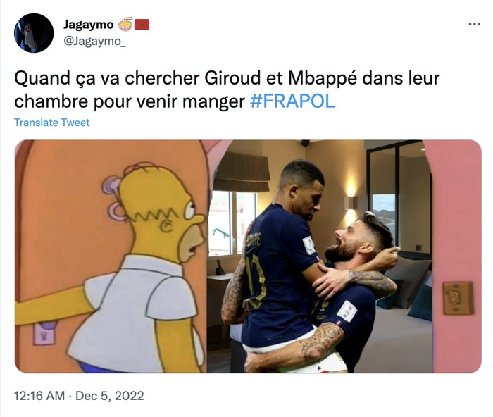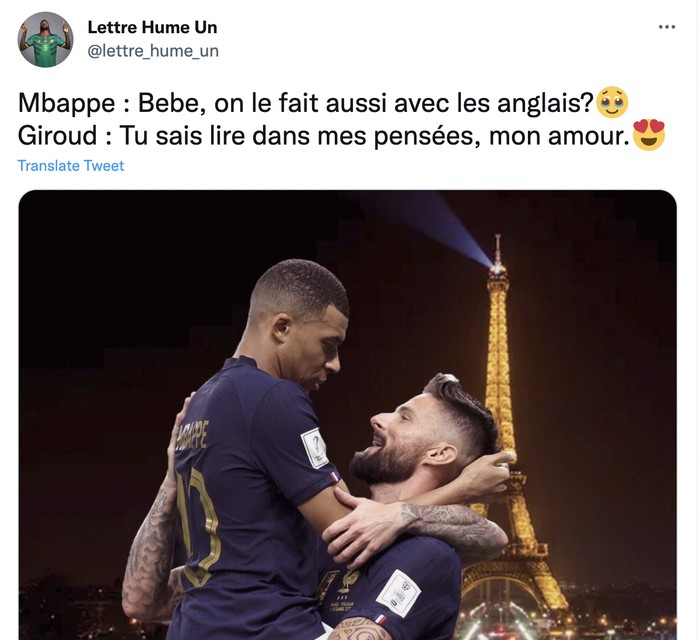Akun ini bercanda bahwa Mbappe akan mencium Giroud jika tidak dihentikan. Foto: Twitter