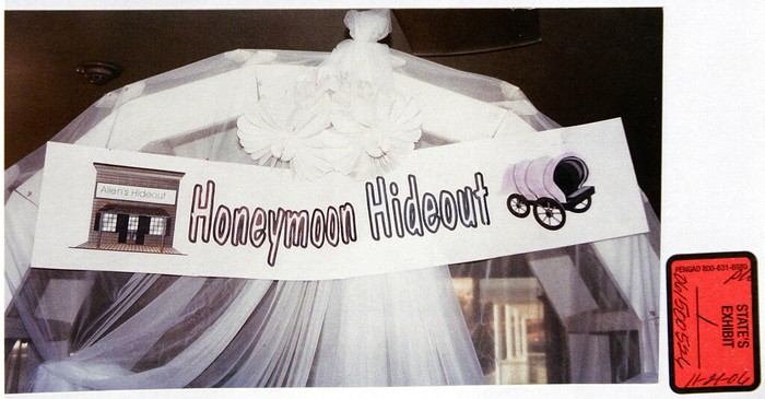 Ini adalah tampilan dekorasi perayaan pernikahan yang disiapkan. Menjadi salah satu barang bukti di persidangan. Foto: AFP/Douglas C. Pizac, Pool