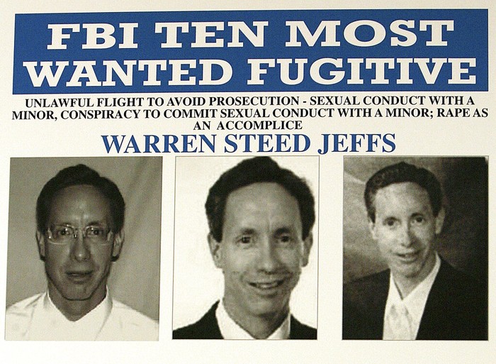 Karena kejahatannya, Warren Jeffs yang kabur dari kasus menikahkan anak di bawah umur, saat itu langsung masuk daftar 10 orang paling dicari oleh FBI. Foto: AP Photo/Matt York