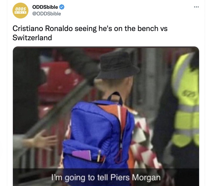 Meme Ronaldo mengadu ke Piers Morgan karena dicadangkan Portugal. Foto: Twitter