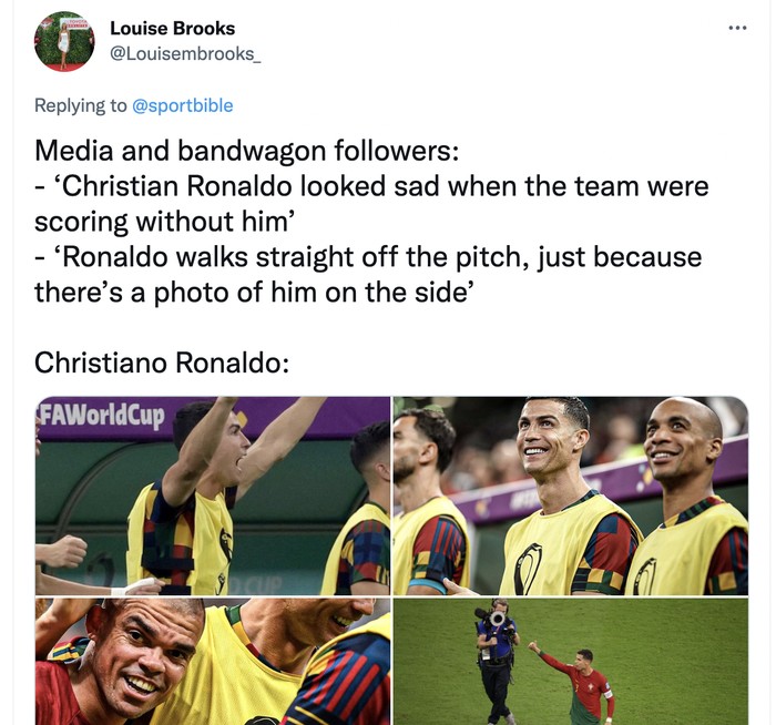 Apapun itu, Ronaldo terbukti masih terus menjadi pusat perhatian, bahkan di bangku cadangan. Foto: Twitter
