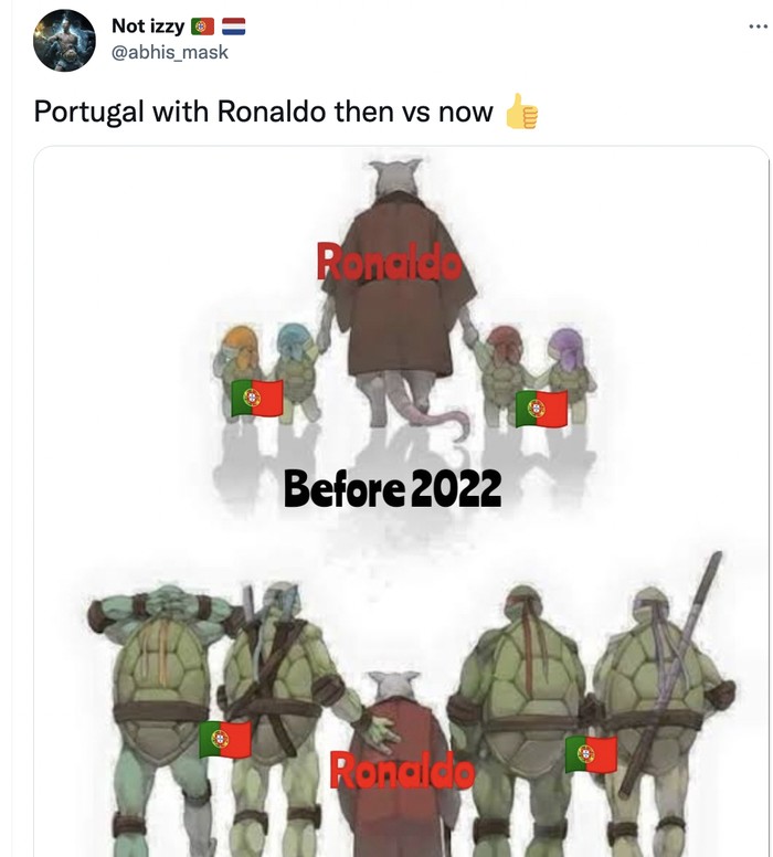 Meme Ronaldo saat ini sudah mulai tua sehingga tidak bisa lagi tampil seperti dulu memimpin Portugal. Foto: Twitter