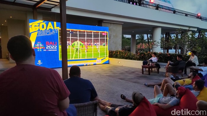 Kebetulan ini potret momen para penonton melihat keseruan dari game eFootball. Foto: (Panji Saputro/detikINET).