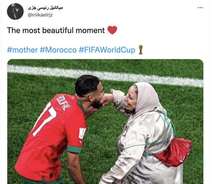 Kembali Achraf Hakim mencium sang ibu usai kemenangan Maroko atas Portugal. Foto: Twitter