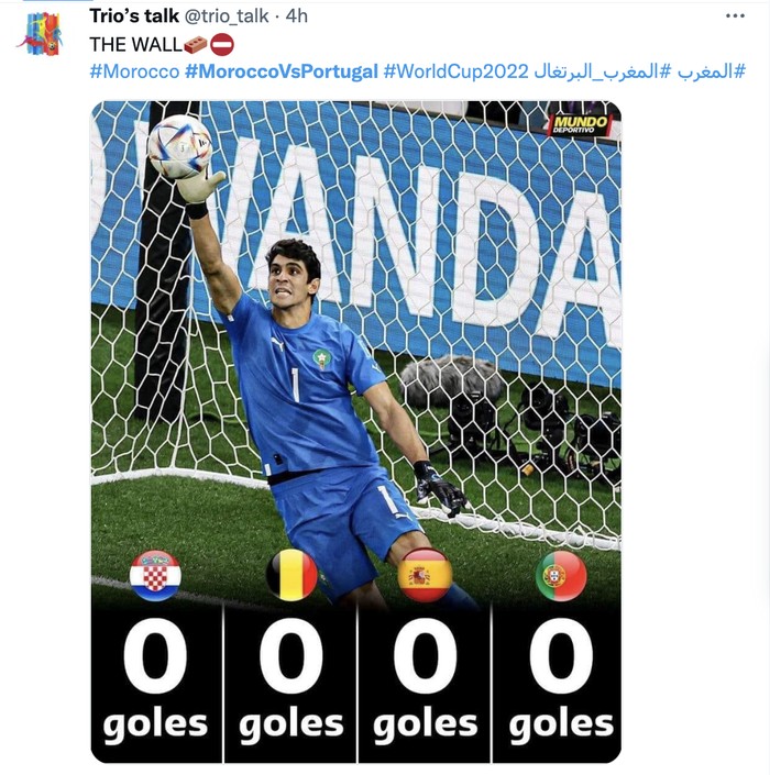 Kiper Maroko adalah salah satu kunci kemenangan mereka dengan banyak membukukan clean sheet. Foto: Twitter