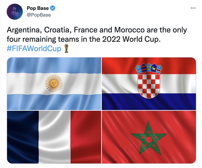 Maroko masuk semifinal Piala Dunia 2022 bareng Argentina, Kroasia dan Prancis. Foto: Twitter