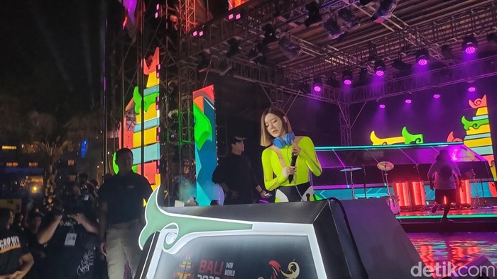 Wanita bernama asli Hwang SoHee ini tampil di acara penutupan Indonesia Esports Summit 2022 di Hotel Merusaka, Nusa Dua, Bali. Foto: (Panji Saputro/detikINET).
