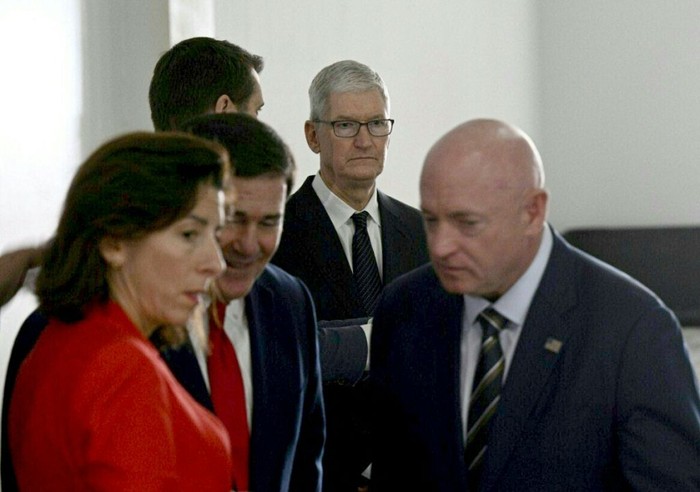 CEO Apple Tim Cook, yang juga menyatakan kalau chip dari pabrik tersebut akan dipakai di iPhone dan MacBook."Chip ini akan dipakai di iPhone dan MacBook, seperti yang dijanjikan Tim Cook. Apple sebelumnya harus membeli semua chip canggih dari luar negeri. Kini kita akan melakukan lebih banyak rantai pasokan mereka di sini," kata Presiden Biden. Foto: Getty Images