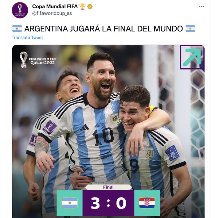 Argentina melangkah ke final dan siap menjadi juara dunia. Foto: Twitter