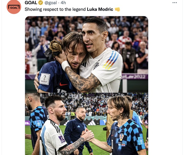 Sedih melihat Luka Modric dan Kroasia tersingkir, tapi senang juga bahwa Messi dan Argentina masuk final Piala Dunia 2022. Foto: Twitter