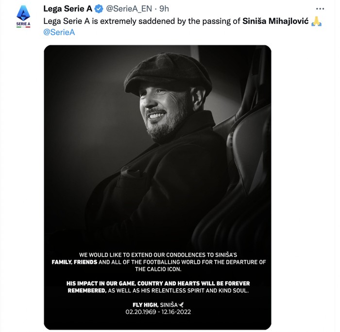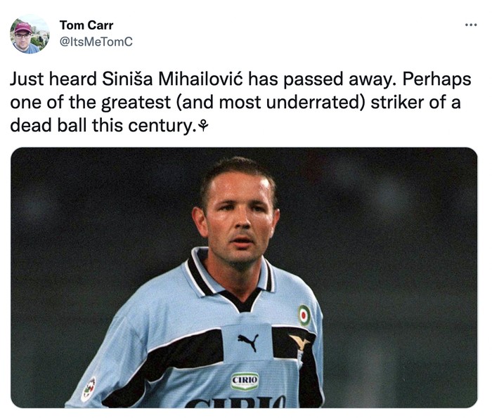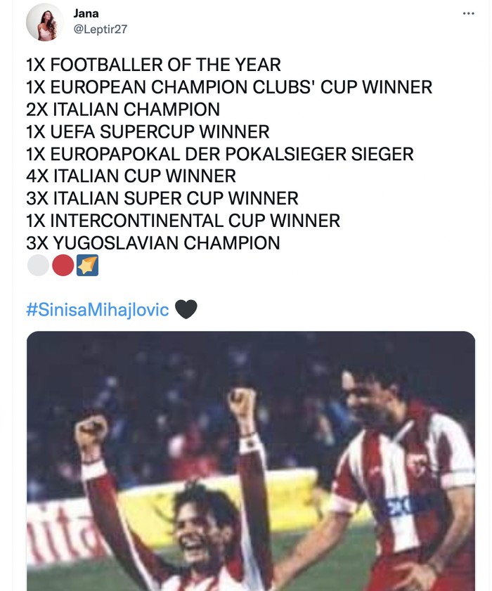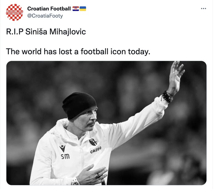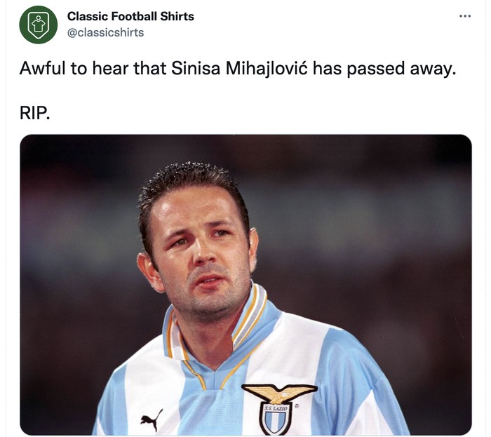 Banyak yang mengenang kehebatan Sinisa dan berduka mengetahui dia telah meninggal dunia. Foto: Twitter