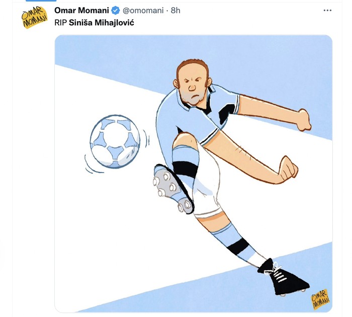 Kartun yang mengenang tendangan bebas Sinisa. Foto: Twitter