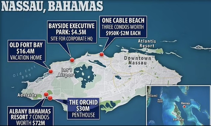Pembelian termahal adalah penthouse senilai USD 30 juta di Albany Bahamas. Dengan enam kamar tidur, rumah ini dilaporkan ditinggali oleh Bankman-Fried dan sembilan rekannya. Foto: Twitter
