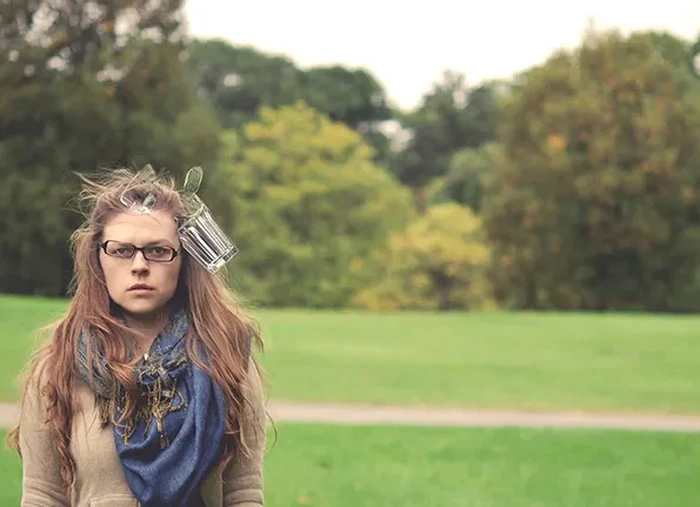 Kaija Straumanis sangat menyukai fotografi. Dia membuat serangkaian foto portrait bertajuk "barang-barang dilemparkan ke kepalaku", karyanya kocak tapi kreatif.