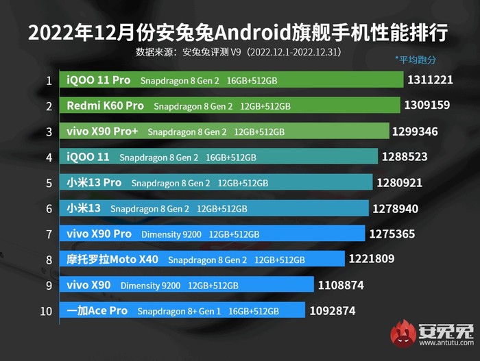 Daftar lengkap HP Android terkencang versi Antutu hingga Desember 2022. Foto: Antutu