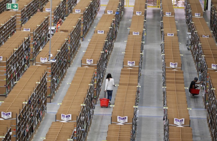 Gudang Amazon berada Amerika Serikat dan di tempat lain, dengan mayoritas berada di Amerika Utara dan Eropa. Di Asia pun jumlahnya cukup banyak. Foto: Getty Images