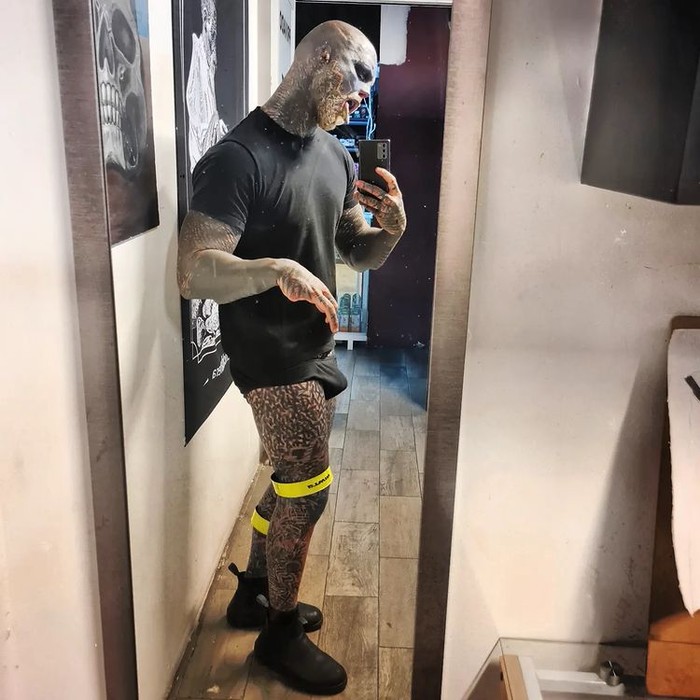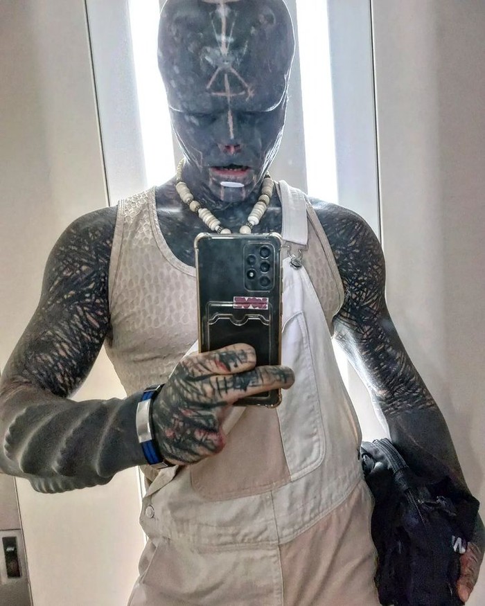 Loffredo melakukan modifikasi hampir di sekunjur tubuhnya. Tato menghiasi dari ujung kepala hingga ujung kaki -- termasuk bola mata. Foto: Instagram/@the_black_alien_project