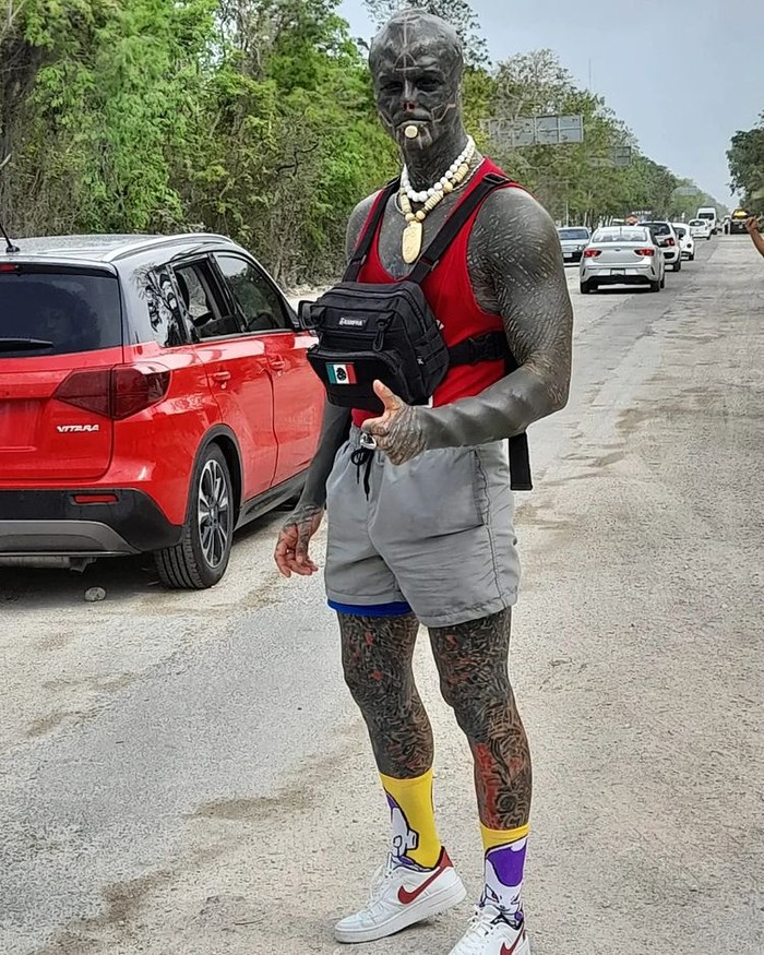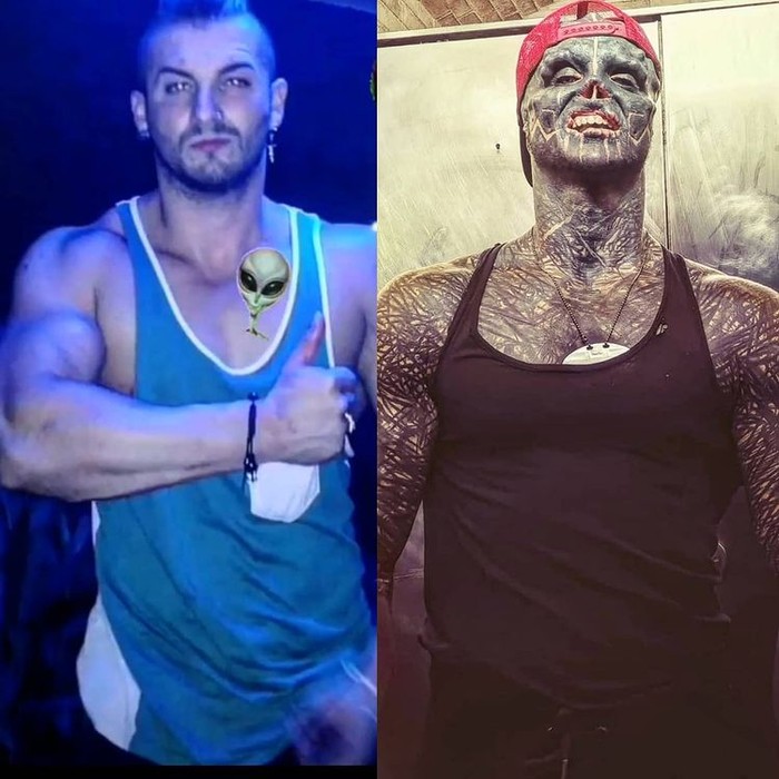 Foto before-after pria bertransformasi yang jadi 'Black Alien' viral di awal tahun 2023.Β Foto: Instagram/@the_black_alien_project