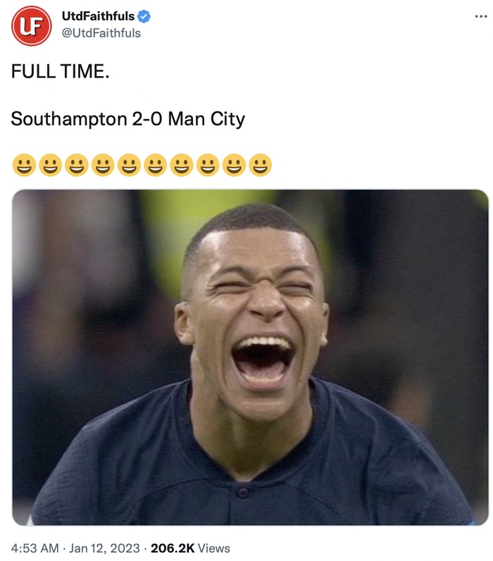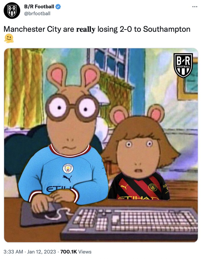 Meme kekalahan Man City jadi suka cita fans klub lain. Foto: Twitter