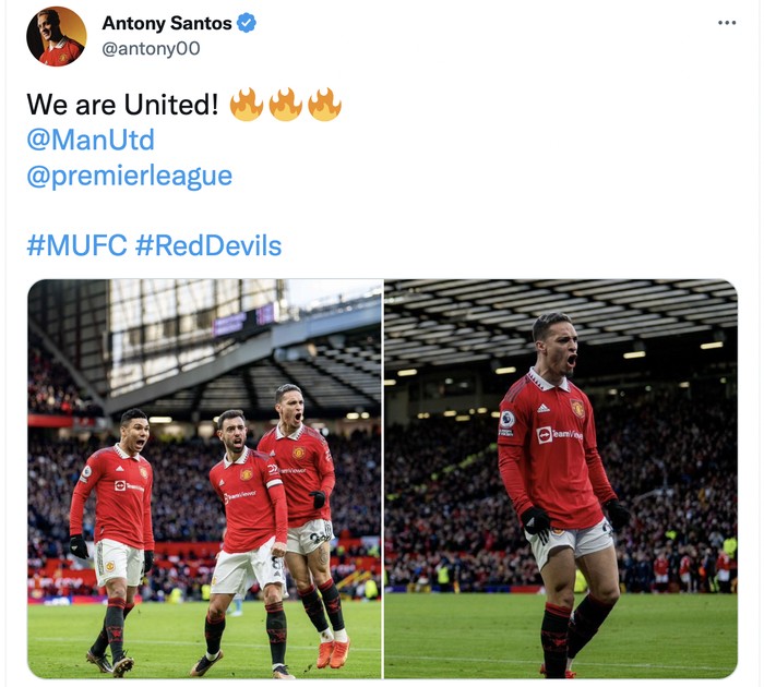 Anthony pun merayakan kemenangan MU atas City dengan caption 'we are united'. Foto: Twitter