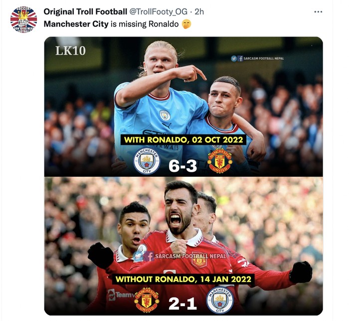 MU tanpa Ronaldo ternyata jauh lebih baik. Foto: Twitter