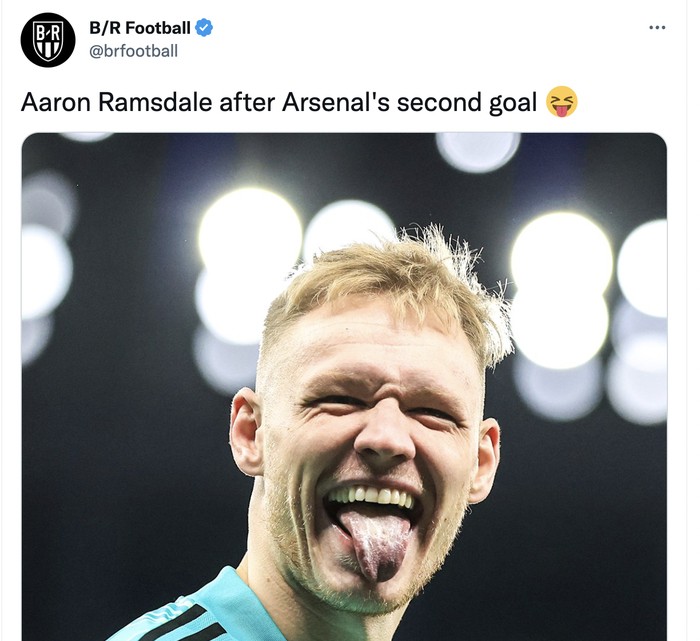 Aaron Ramsdale pun tak dapat menutupi rasa gembiranya. Foto: Twitter