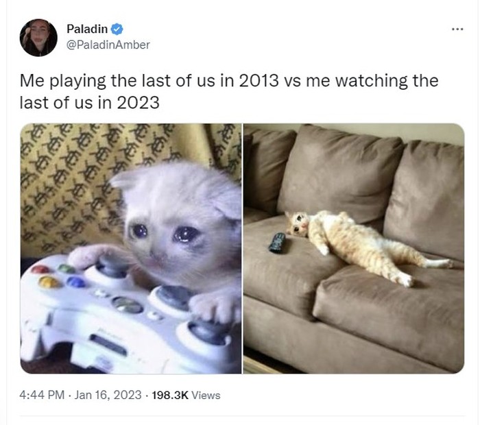 Reaksi memainkan game The Last uf Us di 2013 vs menonton seriesnya di 2023 . Foto: Twitter
