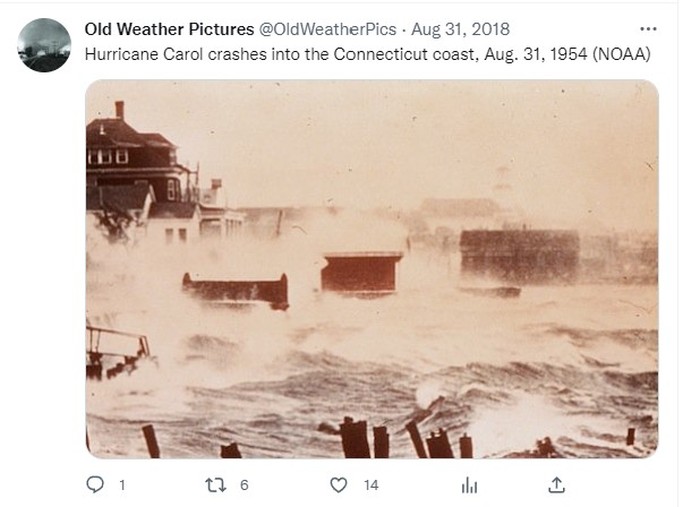 Badai Carol menabrak pantai Connecticut, 31 Agustus 1954 Foto: Twitter/OldWeatherPics