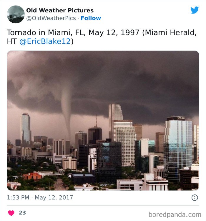 Tornado di Miami, Florida, 12 May 1997. Foto: Twitter/OldWeatherPics
