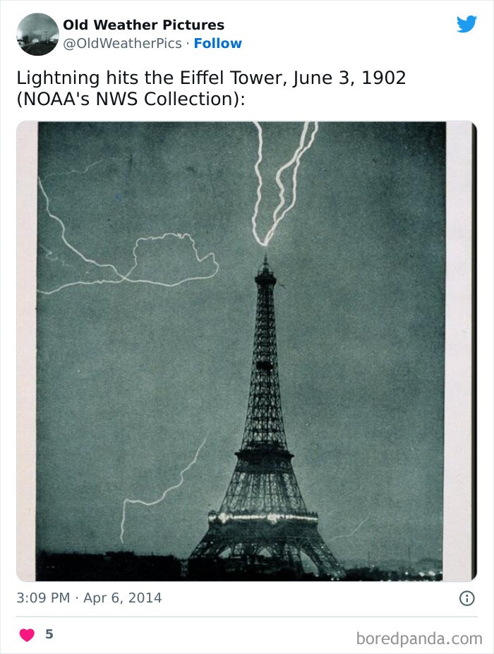 Petir menyambar Menara Eiffel, 3 Juni 1902Β Foto: Twitter/OldWeatherPics