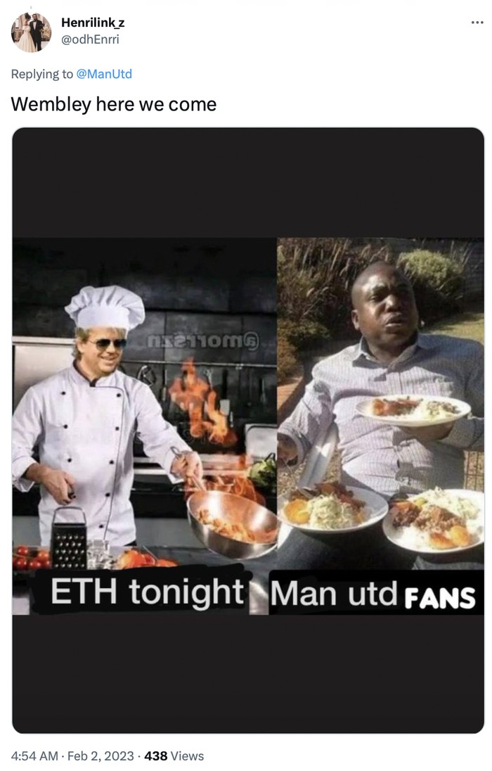 Meme MU yang akan melawan Newcastle di final nanti. Foto: Twitter