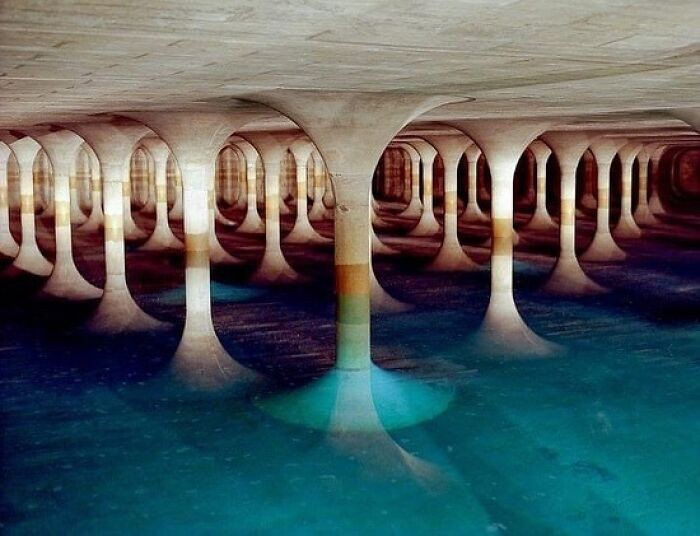 Pemandangan di dalam salah satu dari dua waduk air bawah tanah kota Munich di Taman Forstenrieder, Bavaria, Jerman. Air ini kemudian dialirkan ke rumah warga untuk dikonsumsi. Foto: Boredpanda