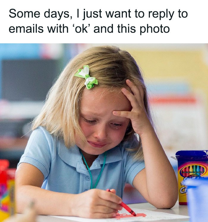 "Kadang aku hanya ingin membalas email dengan 'ok' dan foto ini." Foto: Facebook/Mental Illness and Memes