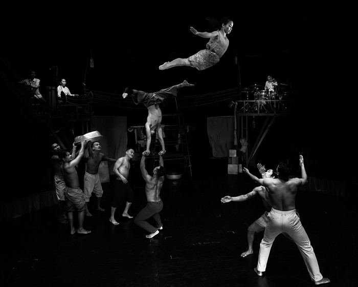 Karya Chan Sithy Heng dari Kamboja. Penampil Phare menceritakan kisah sejarah dan cerita rakyat Kamboja melalui pertunjukan, menggabungkan teknik teater, musik, tarian, dan sirkus. Saya mengambil gambar ini di salah satu serial mereka yang berjudul Same But Different. Foto: The World Photography Organisation