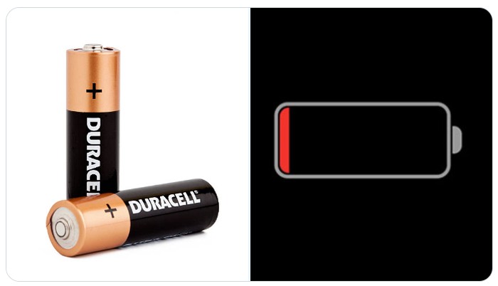 Logo baterai di smartphone kita ide gambarnya dari baterai AA dan AAA. Padahal, tidak ada smartphone yang memakai baterai macam ini kan. Foto: The Cultural Tutor/Twitter