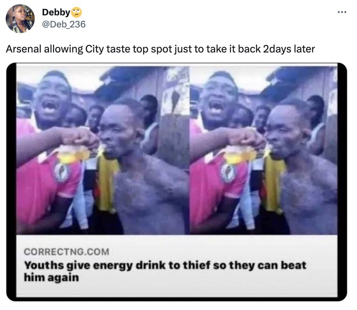 Meme Arsenal mengizinkan City mencicipi puncak untuk waktu yang sangat singkat. Foto: Twitter