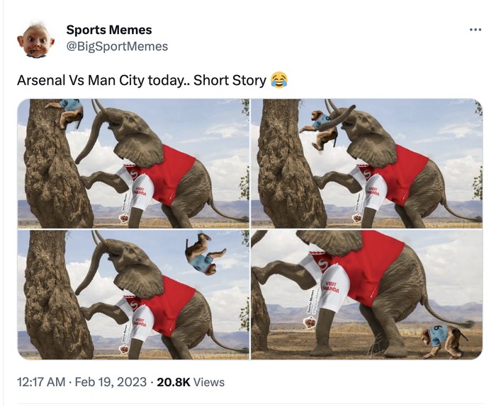 Meme Arsenal mendepak City dari puncak Liga Inggris. Foto: Twitter