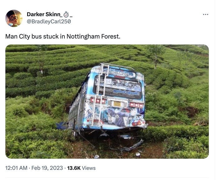 Sementara City terjebak di hutan Nottingham Forest. Foto: Twitter