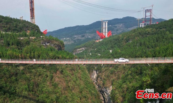 Jembatan ini tampak seolah melayang di ketinggian 300 meter, membentang di antara jurang di Distrik Wulong, Kota Chongqing. Foto: ECNS.cn