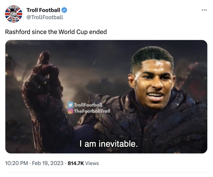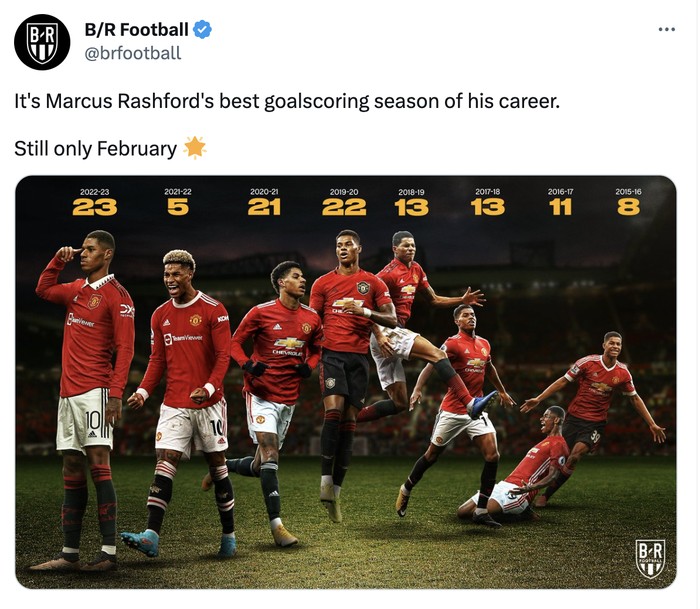 Semenjak Piala Dunia di Qatar, Rashford memang tak terhentikan. Foto: Twitter