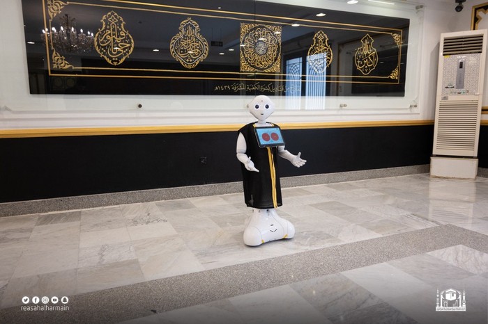 Kehadirannya melengkapi robot-robot sebelumnya diperkenalkan Pengelola Dua Masjid Suci, yaitu robot yang bertugas membersihkan ruangan dan robot yang membawa dan membagikan air zamzam. Foto: gph.gov.sa