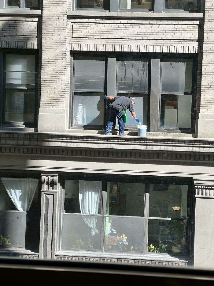 Kawatir petugas ini jatuh. Foto: Reddit via Boredpanda