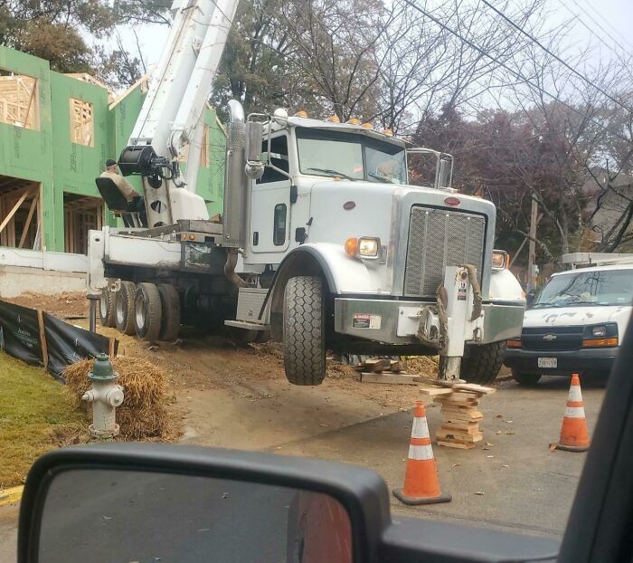 Seberapa tumbukan kayu itu bisa menawah beban truk ya? Foto: Reddit via Boredpanda