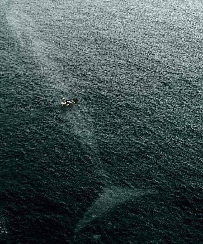 Para nelayan tidak menyadari ada sosok begitu besar di bawah perahu mereka. Meskipun paus ini sama sekali tidak berbahaya, ukuran makhluk itu cukup untuk menakuti siapa pun. Dapatkah kamu membayangkan dampak gerakan paus yang sekecil apa pun terhadap seluruh lautan? Foto: Travelerz