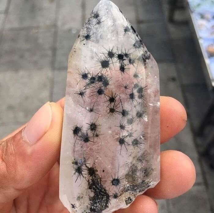 Hampir semua orang yang melihat foto ini awalnya mengira bahwa bintik hitam yang ditemukan di dalam kuarsa sebening kristal ini adalah laba-laba mini yang terperangkap dalam malapetaka selamanya di dalam batu, membatu menjadi bentuk yang unik dan menyeramkan. Namun, penampilan bisa menipu. Batu itu tidak dipenuhi laba-laba hitam kecil, melainkan 'hantu' Mannardite. Inilah yang menyebabkan bintik-bintik hitam yang agak menakjubkan tersembunyi di dalam kuarsa. Mannardite phantom datang dalam berbagai bentuk dan ukuran. Terkadang mereka kecil dan berlimpah, seperti kristal kuarsa ini, dan di lain waktu mereka tampak lebih besar dan lebih menyatu. Padahal mereka terlihat sangat menyeramkan! Foto: Travelerz