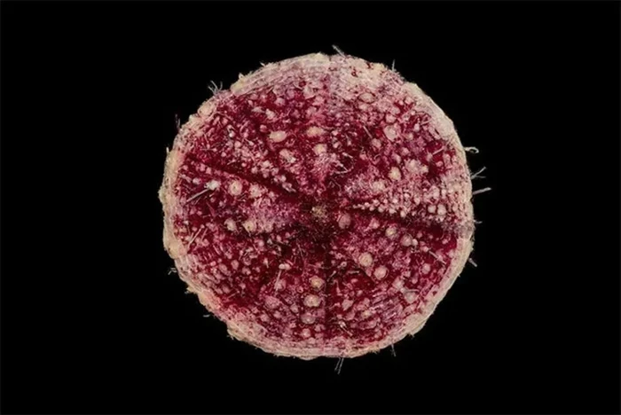 Pancake Urchin.Β Cakram bundar dari bulu babi pekat ini sebenarnya tidak rata di habitat aslinya. Foto: Themindcircle Β
