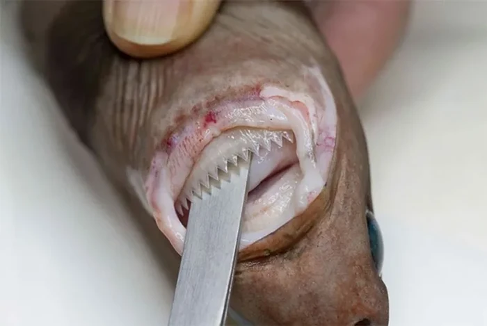 Hiu bioluminescent kecil ini, dengan gigi bergerigi yang tersusun rapi, menghuni "zona senja" samudra di kedalaman hingga 1.000 meter. Ia memangsa ikan besar, paus, lumba-lumba, dan perenang yang malang, menempel pada mereka sebelum mencungkil potongan daging seukuran kue. Foto: Themindcircle