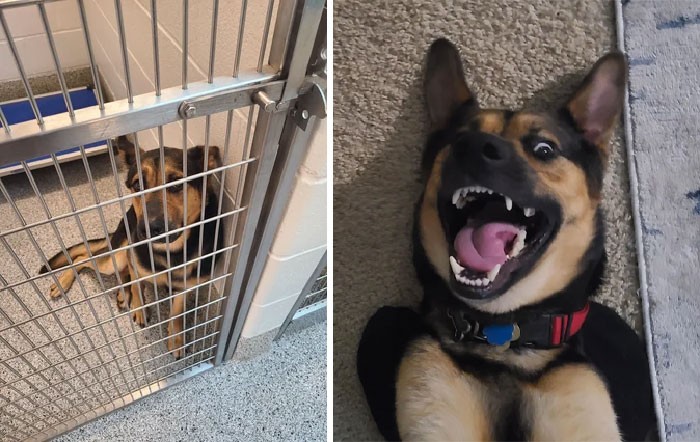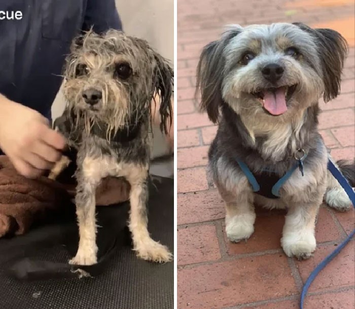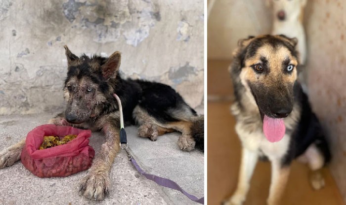 Sebelum dan setelah adopsi. Anak anjing yang kami selamatkan pada Desember 2021. Foto: Boredpanda