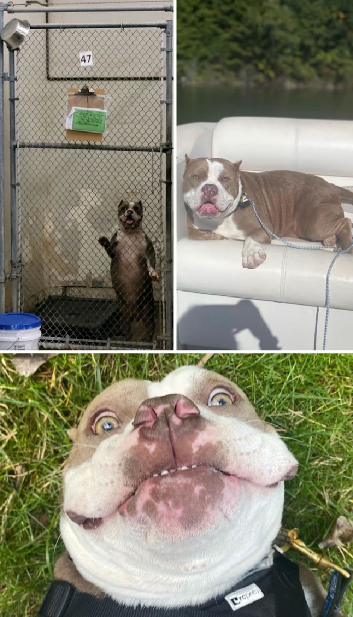 "Setelah seseorang membuangnya dari jendela, tubuhnya dipenuhi lebih dari 30 kutu, tungau hingga botak. Tapi kini ia lebih sehat. Kami menjaganya karena kami ingin dia memiliki kehidupan yang baik dan dia adalah anjing paling bahagia, paling penyayang yang pernah kami miliki." Foto: Boredpanda