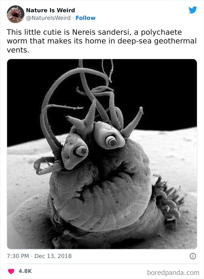 Nereis sandersi, cacing polychaete yang membuat rumahnya di ventilasi panas bumi laut dalam.Foto: Twitter/NaturelsWeird